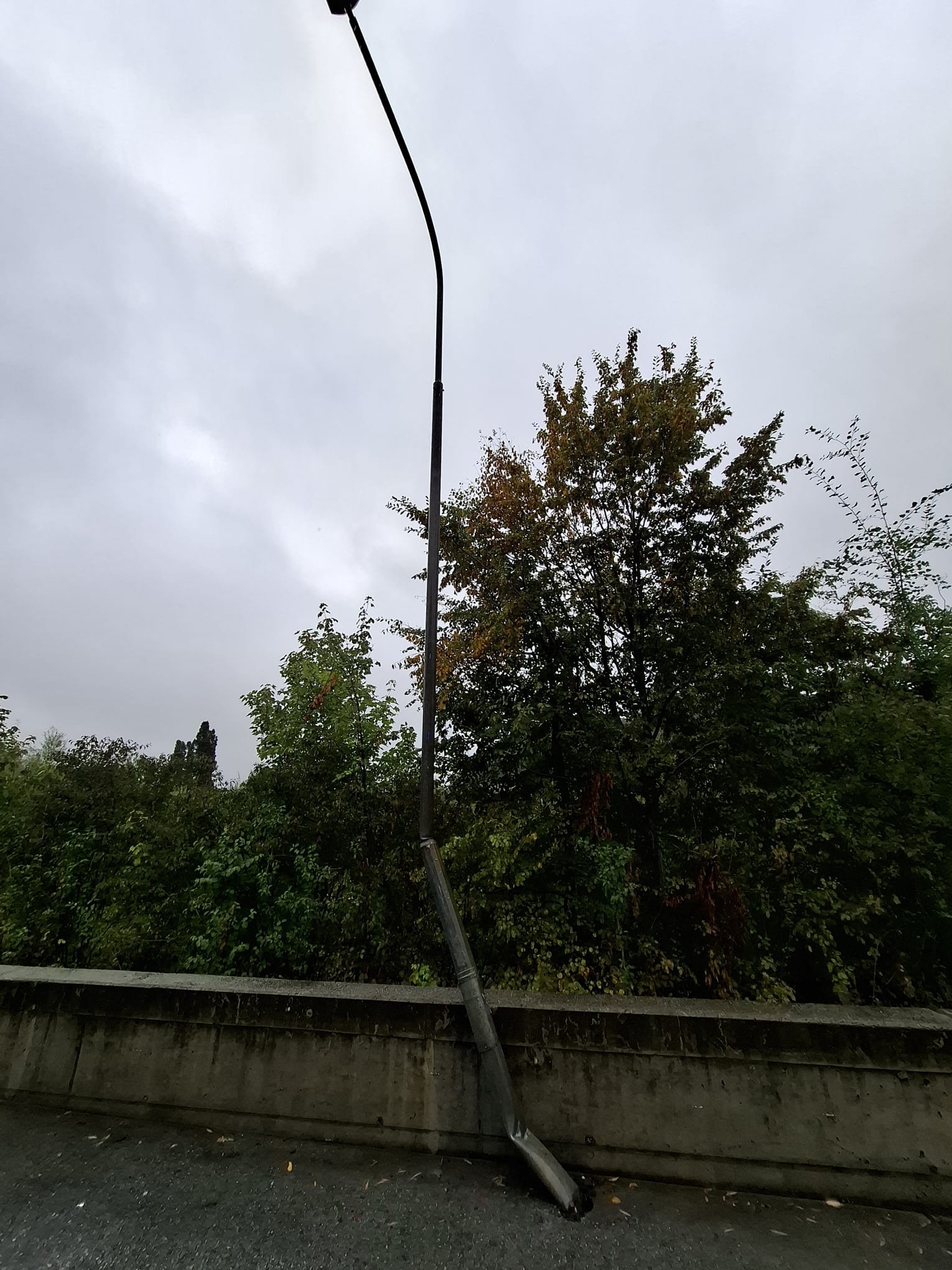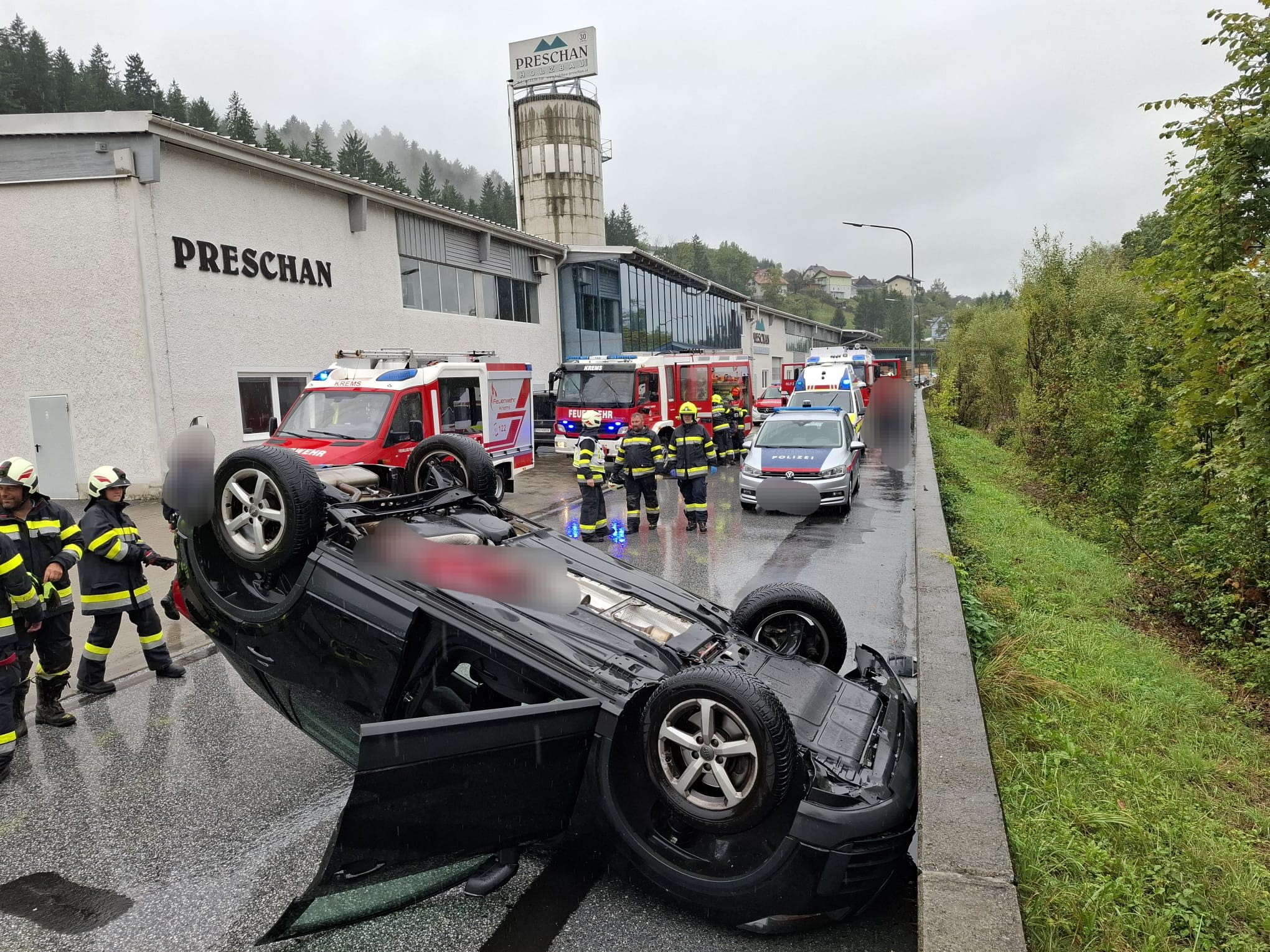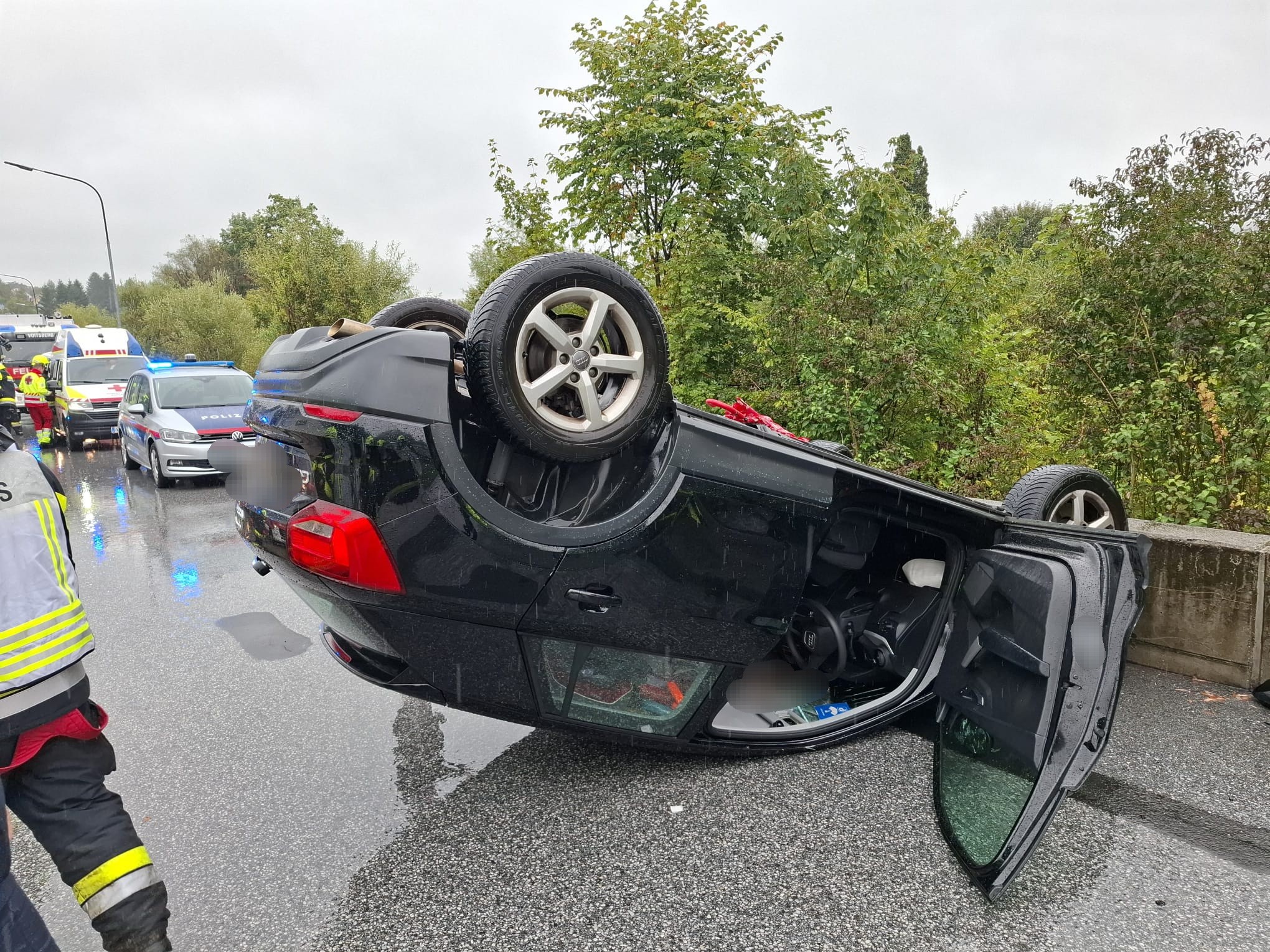 Ein PKW touchierte eine Betonmauer und prallte gegen eine Laterne. Das Auto kam auf dem Dach zum Liegen. Die Lenkerin konnte leicht verletzt aus dem Fahrzeug gerettet werden.