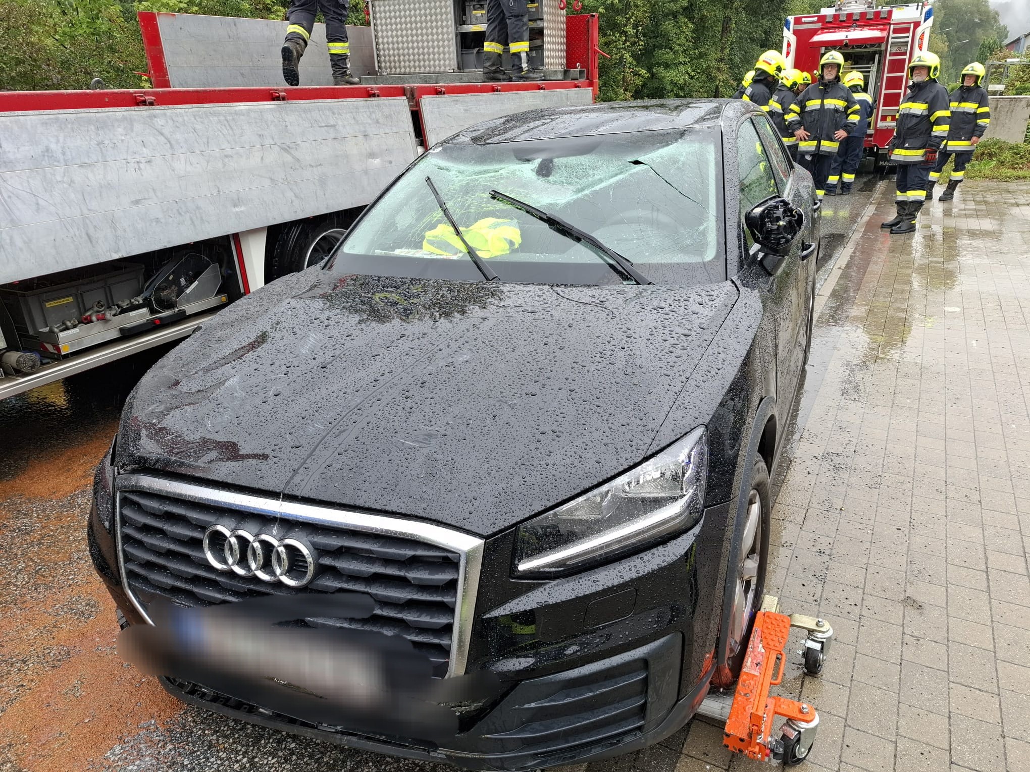 Die zwei Insassen wurden durch die Windschutzscheibe aus dem Fahrzeug gerettet und dem Roten Kreuz übergeben.