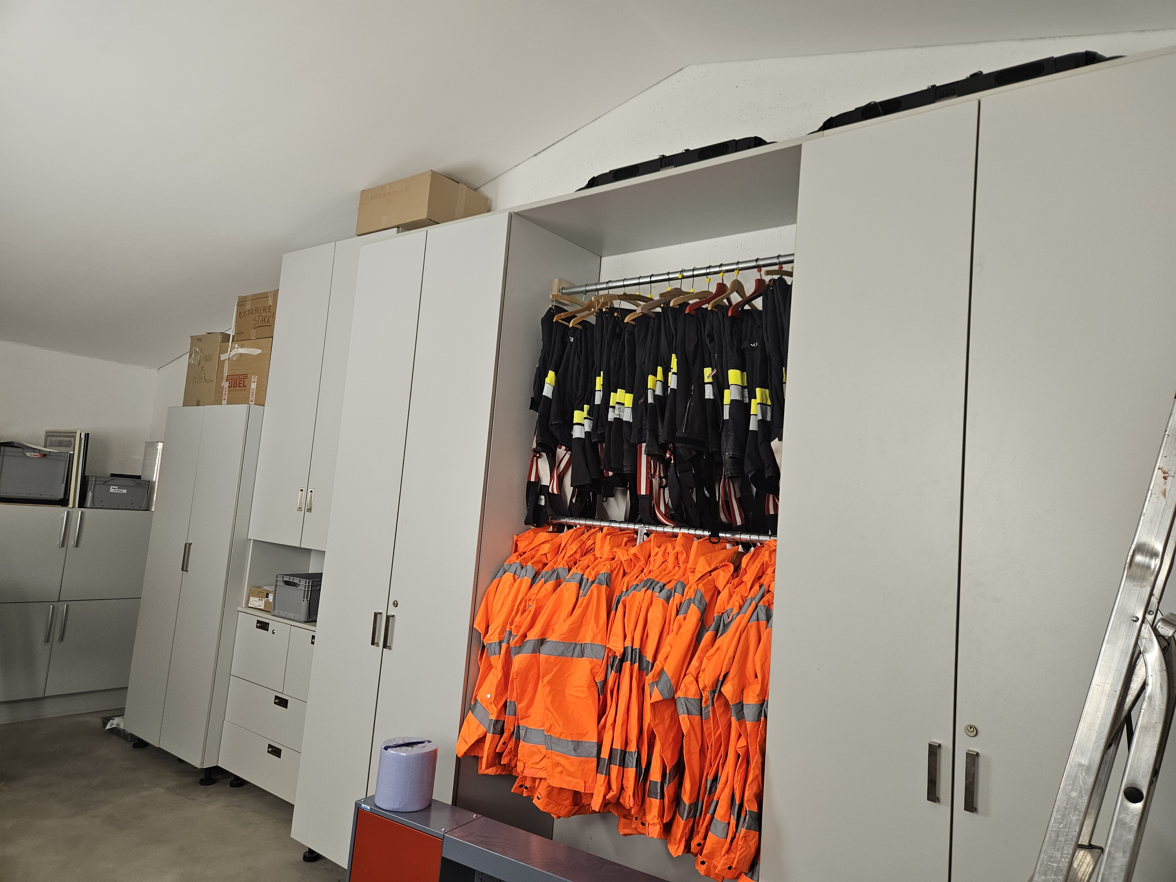 Damit mit den Umbauarbeiten rund um die Garderobe weiter gemacht werden kann wurde diese soweit es geht leer geräumt. Durch die Schaffung einer Kleiderkammer im ersten Stock konnten bereits diverse Schränke samt Inhalt dorthin gebracht werden. Weiter gehen auch die Arbeiten in den neu geschaffenen Lagerräumen und unserem Schlauchturm. Vor allem elektrische, heizungs- und sanitärtechnische Installationsarbeiten stehen hier im Vordergrund.