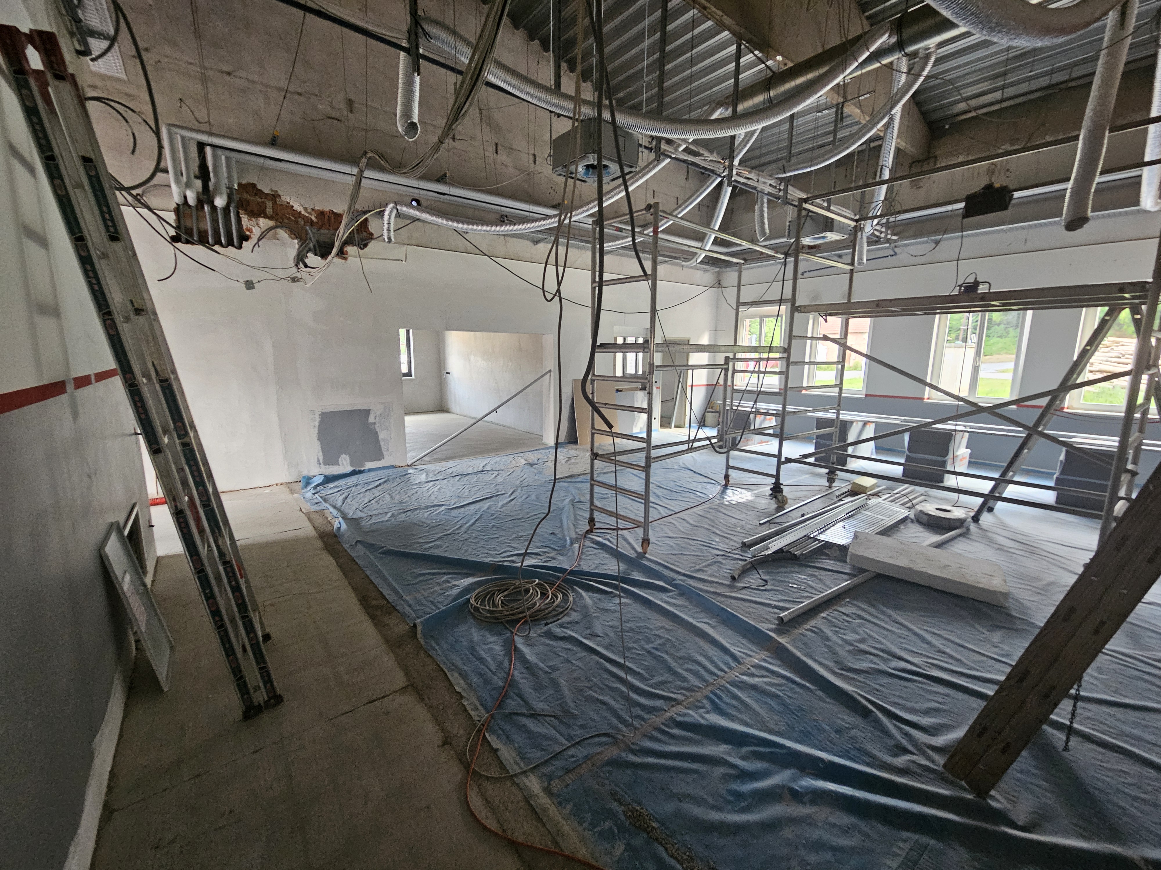 In den letzten Wochen wurde in allen neu geschaffenen Räumen der Estrich eingebracht. Zur Vorbereitung auf die Renovierungen unseres Schulungsraums und unseres Büros wurden diese ausgeräumt und eine Wand des Schulungsraums abgetragen.